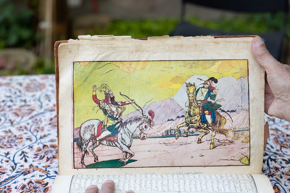 “It’s been forty-three years since I’ve seen my home. All I have left is a jar of soil. It’s good soil. Nahavand is a city of gardens. A guidebook once called it ‘a piece of heaven, fallen to earth.’ The peaks are so high that they’re capped with snow. A spring gushes from the mountain, and flows into a river. It spreads through the valley like veins. We lived in the deepest part of the valley, the most fertile part. Our father owned thousands of acres of farmland. When we were children he gave us each a small plot of land to plant a garden. None of the other children had the discipline. They’d rather play games. But I planted my seeds in careful rows. I hauled water from a nearby well. I pulled every weed the moment it appeared. As the poets say: ‘If you cannot tend a garden, you cannot tend a country.’ My garden was the best; it was plain for all to see. The discipline came from my mother. She was very devout. She prayed five times a day. Never spoke a bad word, never told a lie. My father was a Muslim too, but he drank liquor and played cards. He’d wash his mouth with water before he prayed. The Koran was in his library. But so were the books of The Persian Mystics: the poets who spent one thousand years softening Islam, painting it with colors, making it Iranian. Back then it was a big deal to own even a single book, but my father had a deal with a local bookseller. Whenever a new book arrived in our province, it came straight to our house. I’ll never forget the morning I heard the knock on the door. It was the bookseller, and in his hands was a brand-new copy of Shahnameh. The Book of Kings. It’s one of the longest poems ever written: 50,000 verses. The entire story of our people. And it’s all the work of a single man: Abolqasem Ferdowsi. Shahnameh is a book of battles. It’s a book of kings and queens and dragons and demons. It’s a book of champions called to save Iran from the armies of darkness. Many of the stories I knew by heart. Everyone in Iran knew a few. But I’d never seen them all in one place before, and in a beautiful, leather-bound edition. The book never made it to my father’s library. I brought it straight to my room.”